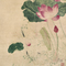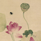 这是一幅表现池塘风和日丽景色的写实画。作者在图中没有刻意地描绘水,而是通过惬意于荷花丛中的鱼儿,将一池清水巧妙地暗示了出来。作者又通过鱼儿若聚若离、或远或近的交错游动,巧妙地扩展了画面的深远空间。图中所绘荷花绰然俏丽,花、叶敷色艳丽而不浓腻,工致的晕染,旨在追求花、叶含水带露的润泽、鲜灵与生动,清逸秀爽的笔墨则写出了「出淤泥而不染」的荷花品格。